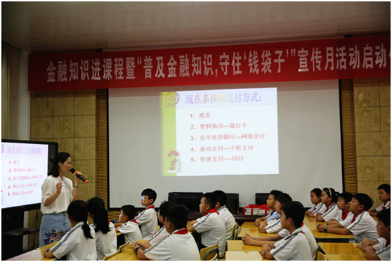 随后,实验小学的老师围绕着如何辨别假币、电信防诈骗常识以及如何养成理财好习惯等内容,给同学们上了一堂活泼生动的金融知识普及课。同学们全神贯注听课并积极踊跃地参与课堂互动问答,课堂气氛活跃,师生们普遍认为,采用进课程这种同学们易于接受的方式宣传和普及金融知识,对孩子们进行金融知识的启蒙教育非常有意义。