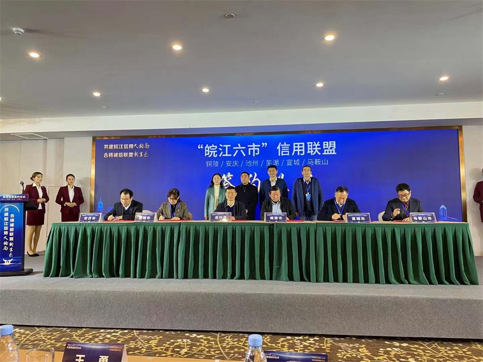 12月3日上午,皖江六市信用联盟签约仪式在铜陵举行。铜陵、安庆、池州、芜湖、宣城、马鞍山六市携手成立皖江信用联盟,将立足各市现有的社会信用体系建设基础,进一步深化社会信用体系建设合作,共同打响皖江六市信用联盟品牌,为促进区域经济社会发展营造健康环境。