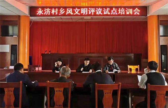 △东至县洋湖镇永济村召开乡风文明评议试点培训会