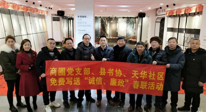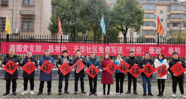 当日,开展诚信.廉政春联迎新春活动。蓉城镇皖南大市场商圈党支部、天华社区邀请书法家走进商圈、社区,无偿为群众书写并赠送诚信.廉政文化对联。将蕴含诚信与廉洁理念的春联赠送至千家万户,诚信与廉洁之风如春风润物,渗入人心。