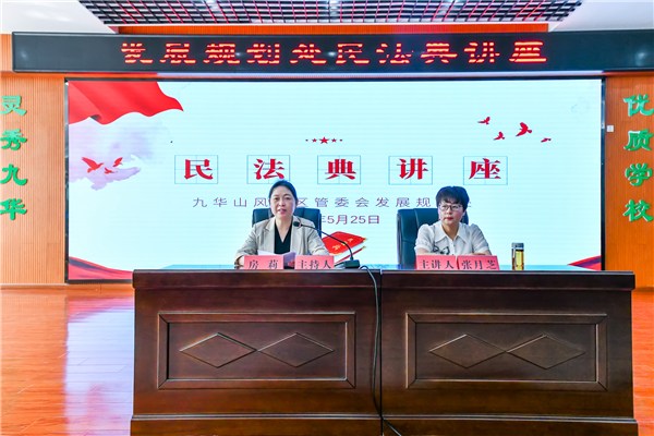 5月25日,发展规划处举办民法典讲座,处党组书记、处长房莉主持,处机关、中心学校、医院、幼教中心、卫生监督所干部职工及学生代表等共50人参加。