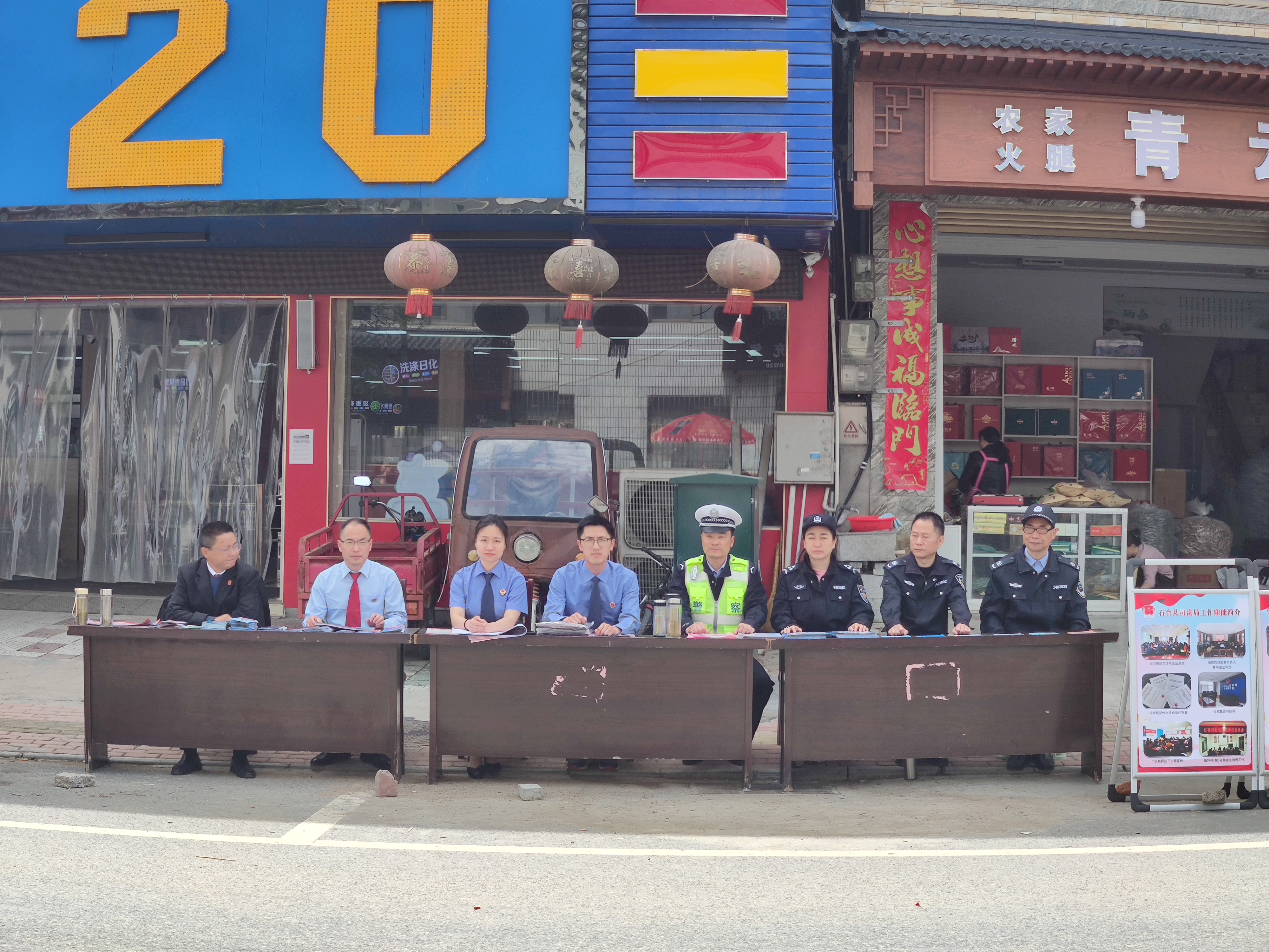 为进一步提升群众安全感和政法满意度,努力营造和谐稳定的社会环境,5月8日,七都镇政府联合县公安局、县检察院、县法院、县司法局等单位在辖区超市门口开展“双提升”集中宣传活动,全力推进平安石台建设。