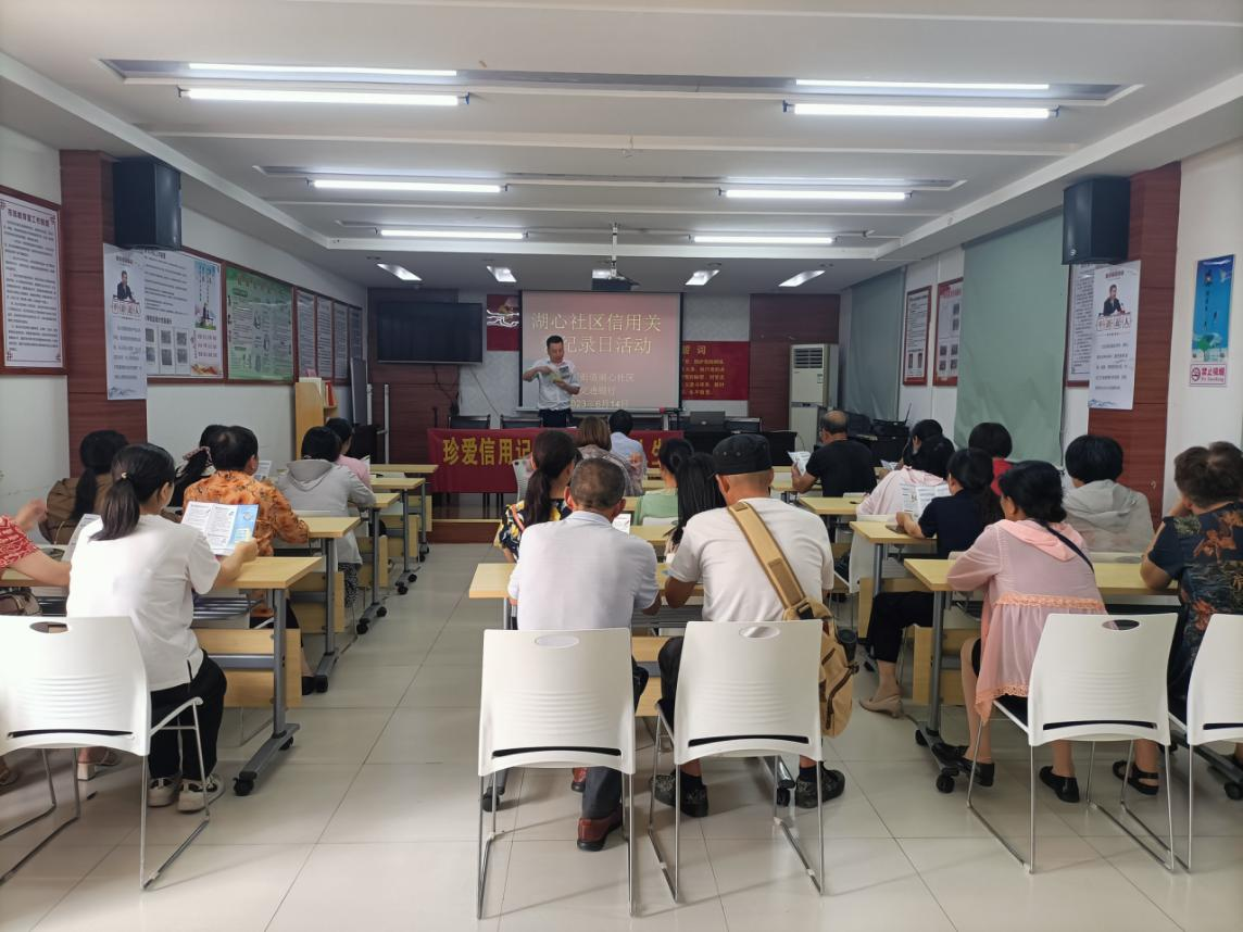 6月14日,是我国“信用记录关爱日”,为普及信用知识,提高群众信用意识,营造良好的社会信用环境,形成健康的消费习惯。14日上午,湖心社区联合辖区内交通银行开展“6.14信用记录关爱日”宣讲活动。