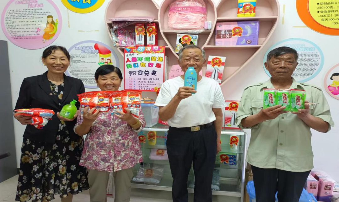 “5积分就能兑换一袋洗衣粉,10积分可以兑换抽纸、毛巾,30积分还能兑换一瓶洗发水”。近日,东至县胜利镇康桥村迎来了今年的第三次积分兑换活动。兑换现场,摆放着洗衣粉、抽纸、储物箱、毛巾、洗发水等生活用品,村民们齐聚一堂,拿着自己的积分卡来到村部积分超市,井然有序排队兑换积分值相应的物品。村民章某某等用积分兑换了洗发水、洗衣粉、香皂等物品,高兴地带着“战利品”回家“炫耀”了。