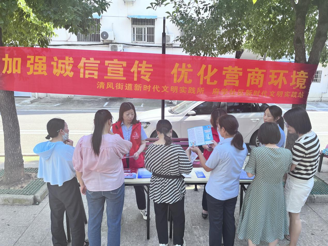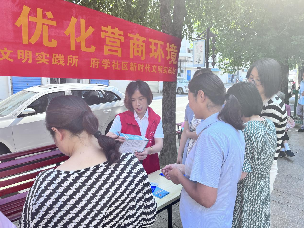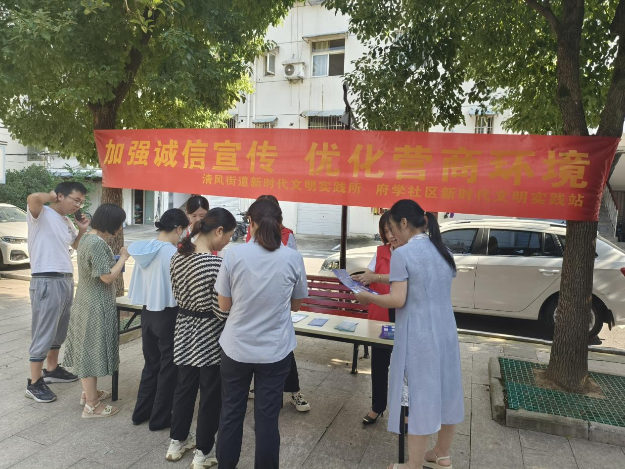 为积极培育和践行社会主义核心价值观,进一步加强诚信建设,力争在辖区营造诚信的营商环境和让广大消费者放心的消费环境,9月8日下午,清风街道府学社区新时代文明实践站组织志愿者在社区志愿服务广场开展“加强诚信宣传 优化营商环境”主题宣传活动。