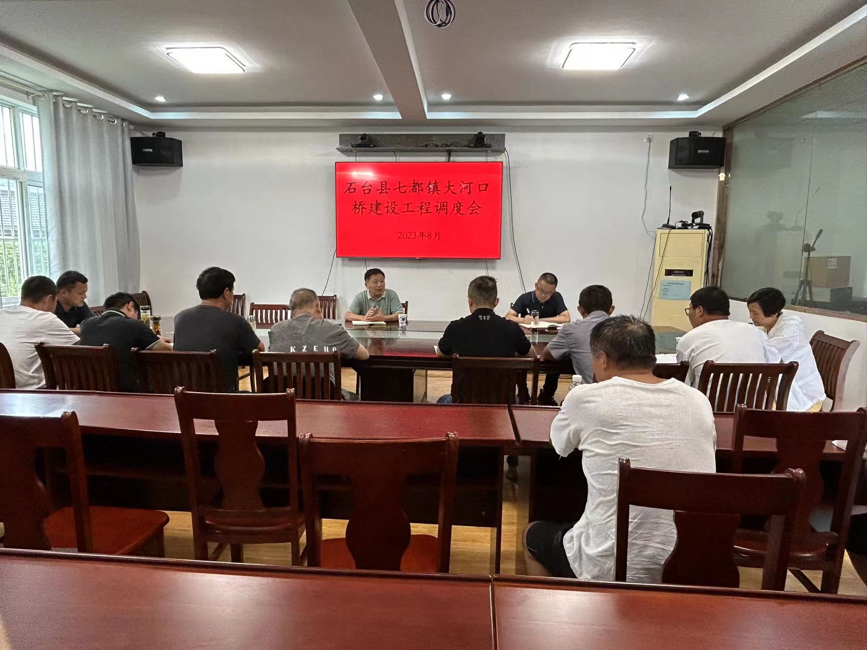 8月28日,七都镇召开重点工程项目推进调度会,对大河口桥、小流域治理等项目的建设进度和存在的困难进行协调调度,会议由县人大常委会党组副书记、副主任江洪主持,镇党委主要负责同志,项目所在村、施工单位、监理单位、设计单位相关负责人参加会议。