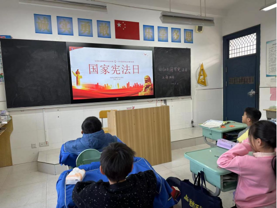 为了增强宪法意识,弘扬宪法精神,加强宪法实施,全面推进依法治国,建设社会主义法治国家,九华山风景区中心学校开展一系列宪法日宣传教育活动。利用周一升旗仪式,举行“与法携手 走向明天”国旗下讲话,利用校园广播播放宪法内容、利用led电子屏、各班级板报学宪法标语宣传,营造浓厚的学习宪法氛围,各班级还开展了学宪法征文活动和《国家宪法日》主题班会课。