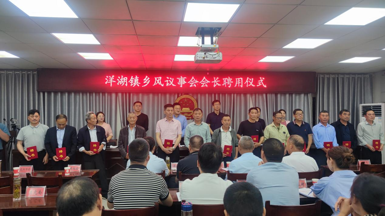 14位乡风议事会会长端庄就座,洋湖镇党政领导班子隆重为各位会长颁发聘书,标志着洋湖镇“有事找我”乡风议事会正式启动运行,也标志着基层治理新局面的诞生。