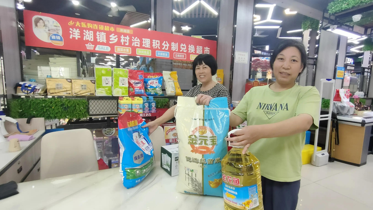 据悉,洋湖镇党委政府牵头建立信用积分超市,与镇域范围内规模较大的超市对接,由政府精心定制“积分优胜户”提货券,面值50-60元,发放给对应的“优胜户”,可以前往超市兑换相应的物品。