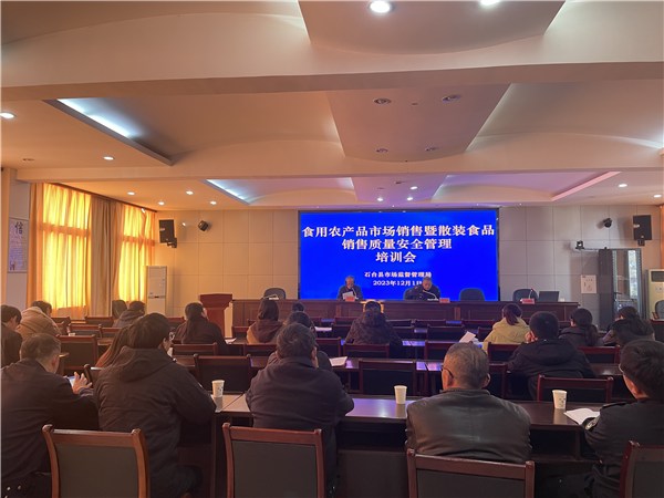 为贯彻落实《食用农产品市场销售质量安全监督管理办法》《安徽省市场监督管理局散装食品销售质量安全管理规范》相关要求,推动食品销售单位食品安全主体责任落实,进一步提升企业食品安全管理水平。12月1日,石台县市场监管局召开食用农产品市场销售暨散装食品销售质量安全管理培训会,对食用农产品和散装食品监管风险点、难点再规范再要求。县市场监管局分管领导、相关监管人员、全县农贸市场、超市、批发单位负责人和食品安全管理人员等30余人参加会议。