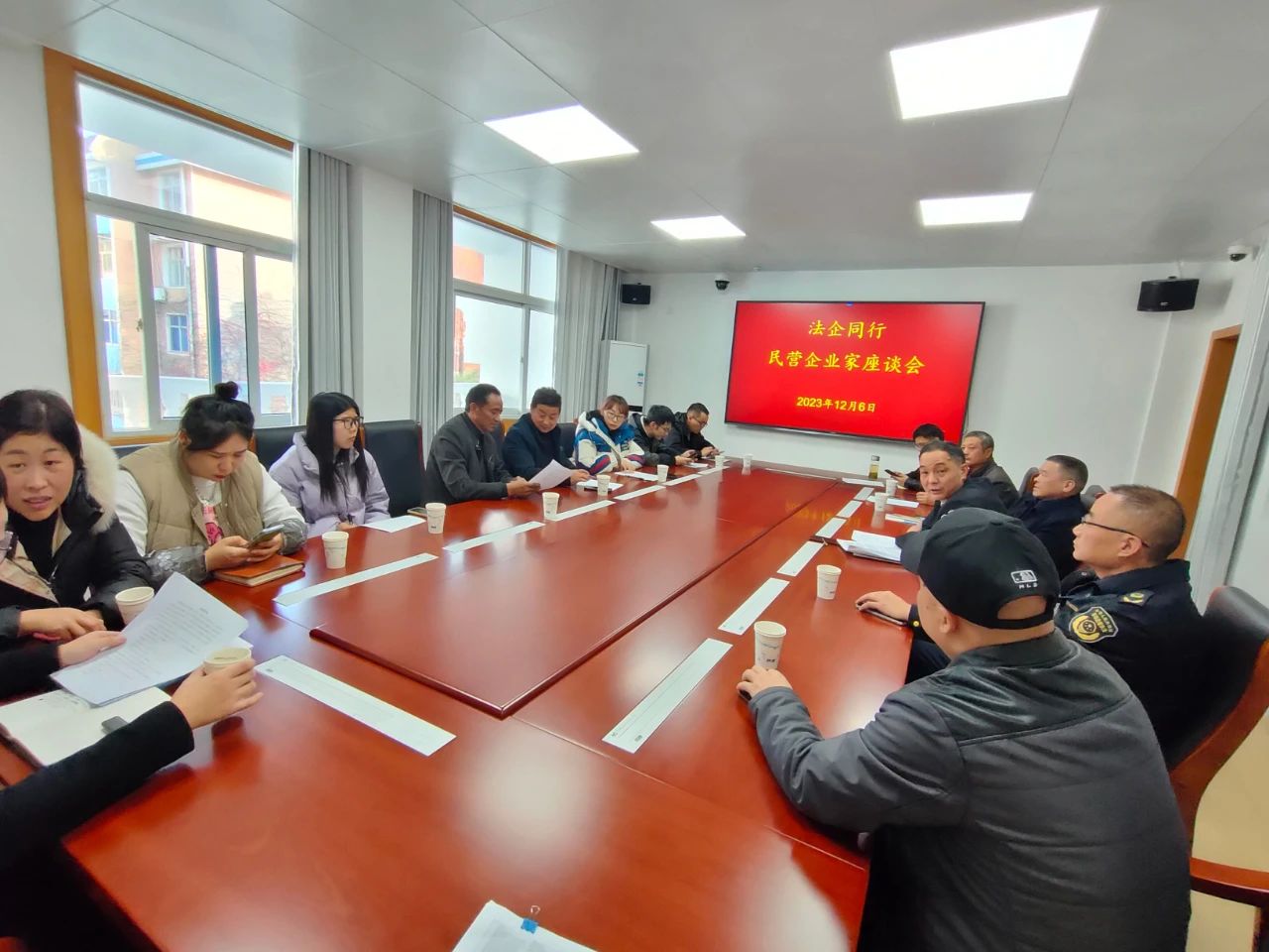为进一步推动优化营商环境工作扎实开展,精准高效解决民营企业发展难题,12月6日下午,石台法院召开“法企同行”民营企业家座谈会。县工商联、市场监管局相关人员及仁里镇建筑、汽修、家具、医疗服务等行业十余名民营企业家代表应邀参加。