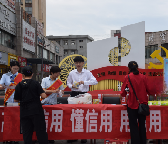 组织辖内各金融机构利用营业网点悬挂宣传标语、设置宣传展板、摆放宣传折页,做好“阵地”宣传,制造浓厚的宣传氛围。活动现场,志愿者们向群众宣传征信知识,宣传诚信理念,弘扬诚信文化,着重向群众介绍了什么是信用、信用有哪些形式、什么是社会信用体系等信用基本知识,通过案例讲解等形式引导群众避免不良征信,并告知失信后如何修复信用等,从而进一步增强广大群众诚信意识。