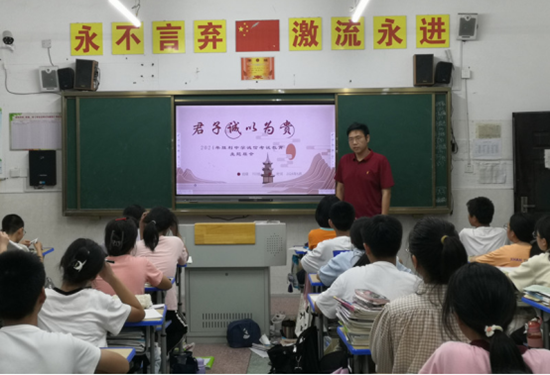 东至县胜利中学通过国旗下讲话、播放校园广播、开辟宣传栏、举行演讲比赛、举办签名仪式、签订承诺书等形式宣传了“诚信”的重大意义,诠释了“诚信”的丰富内涵,阐述了生活中处处讲诚信,以诚为本、以信为根的重要性、必要性和迫切性,多举措力促诚信的种子在孩子们心中扎深并生根发芽。