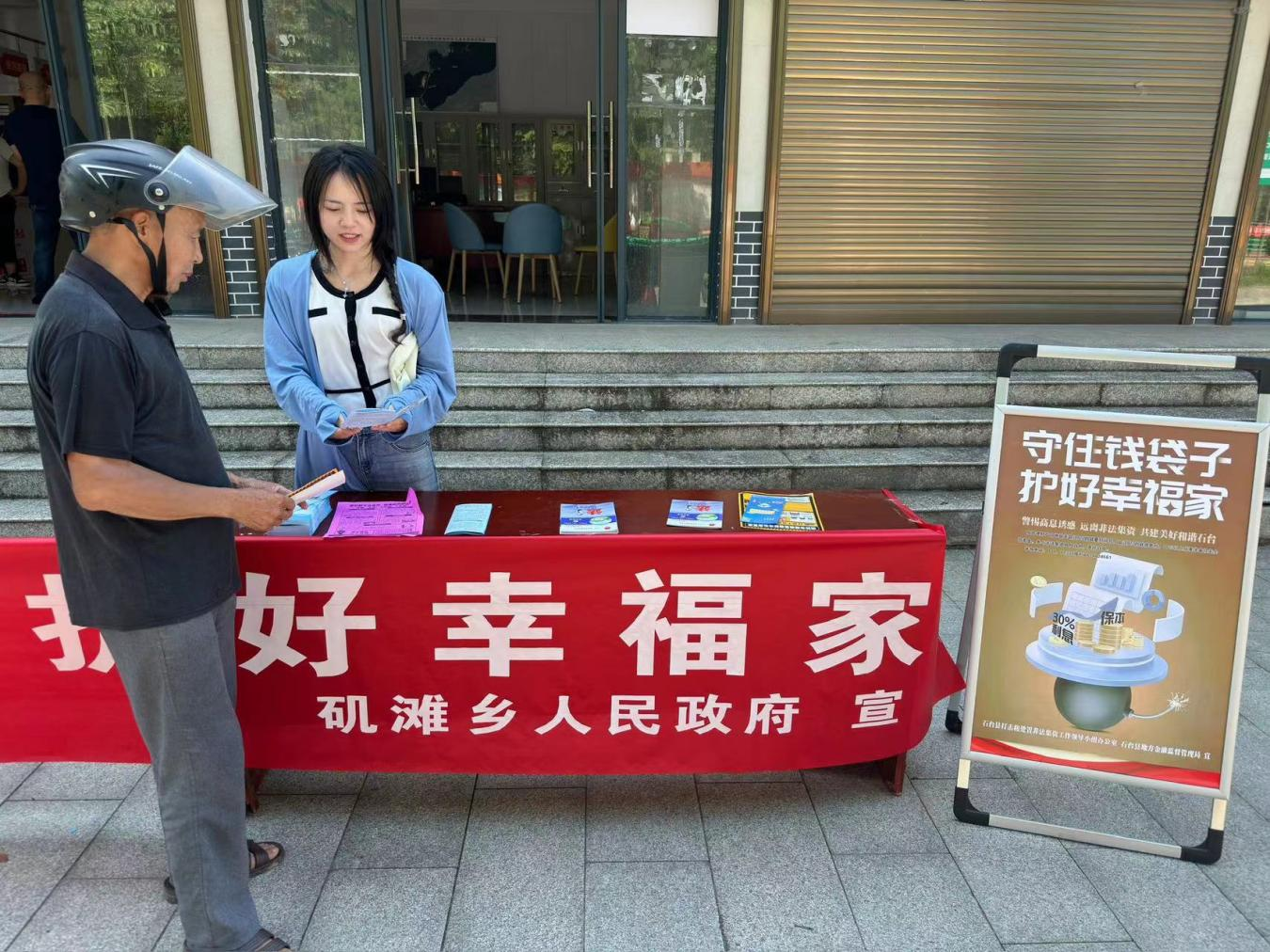 活动现场,工作人员通过发放宣传手册的形式,用通俗易懂的语言向村民们介绍了非法集资的常见形式和手段,让村民们认识到非法集资不仅会给参与者带来严重的经济损失,还会破坏金融秩序和社会稳定。此外,矶滩财政分局通过进村入户宣传知识问答、线上宣传等形式,形成协同联动的工作格局和集中宣传声势,营造良好舆论氛围,汇聚防范和处置非法集资的强大合力。
