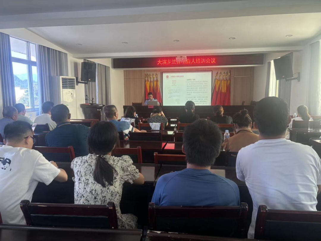2024年8月7日上午,大演乡召开2024年“法律明白人”专题培训会议。本次培训旨在深入学习宣传贯彻习近平法治思想,提升“法律明白人”的法律素养和法治能力,充分发挥其在普法宣传、法律服务、矛盾纠纷化解中的重要作用,通过系统学习和专业培训,打造一支懂法律、善治理、能服务的“法律明白人”队伍,为乡村振兴提供坚实的法治保障。