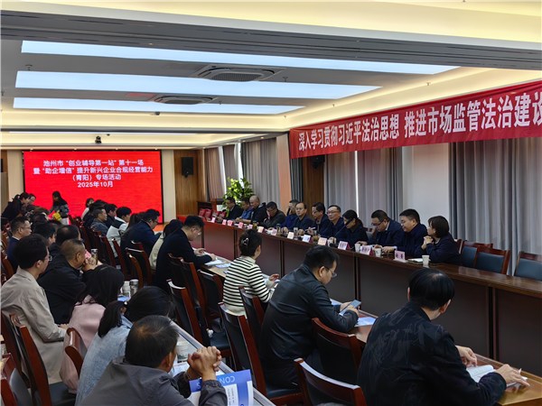 10月24日上午,池州市市场监管局联合青阳县市场监管局举办“创业辅导第一站”第十一场专场活动暨“助企增信”提升新兴企业合规经营能力(青阳)专场活动。市市场监管局、青阳县市场监管局分管领导和相关科室负责同志,创业辅导专家团队,徽商银行池州分行相关负责同志和青阳县“白名单”培育新兴企业代表共50余人参加活动。