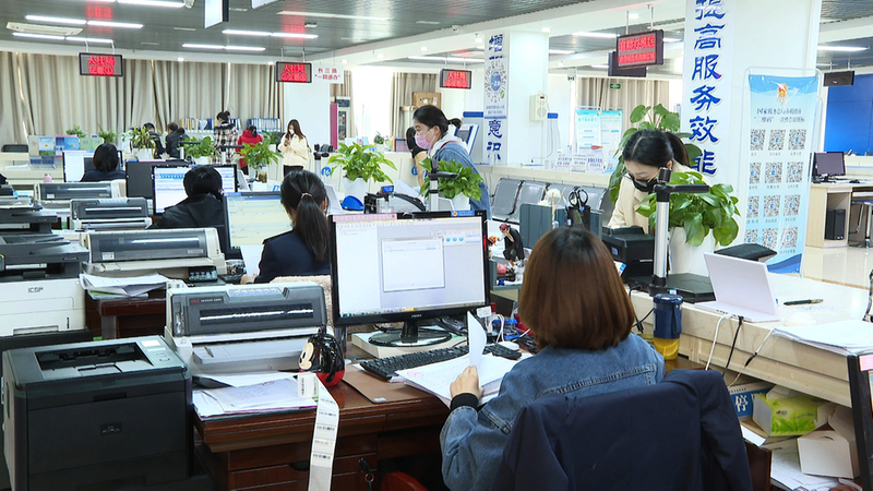 县政务服务大厅工作场景。